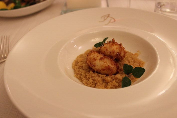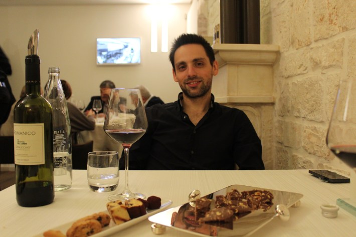 I’m baaaack! I left Canada 3 weeks ago and I’m in Italy now. Every day I’m realizing this was the best decision ever!! I’d like to tell you so many things and show you the thousands of pictures I’ve already taken in these weeks. I visited so many beautiful places and tried new Apulian dishes. So stay tuned! Plus, I’m in love with “focaccia barese” (pronounced fo’kaccha ba’reh-zeh) but this deserves another post! My first “Italian” post contains an enviable medley of ingredients: food and love! In other words: my very first raw fish from the sea and… Gianvito! I celebrated with him my birthday on November 8 and we went to a very special place for dinner: the “Menelao a Santa Chiara” in Turi, a few kilometers from Bari. The restaurant is located in front of the façade of the church of Santa Chiara, within the walls of the enchanting old town. It was an amazing journey of the senses: elegant environment, high quality food and a list of refined wines. Enjoy the pictures!