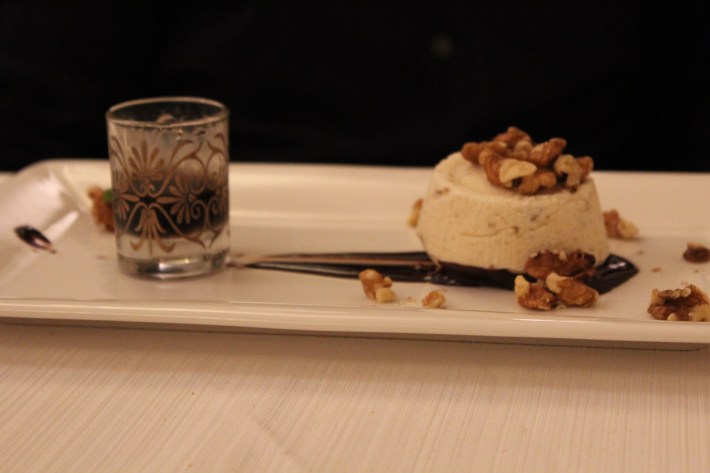 Semifreddo (cake or dessert, very often containing some kind of cream and therefore kept and served chilled) with Nocino (Nocino is a sticky dark brown liqueur from the Emilia-Romagna region in Northern Italy made from unripe green walnuts) / Semifreddo al Nocino