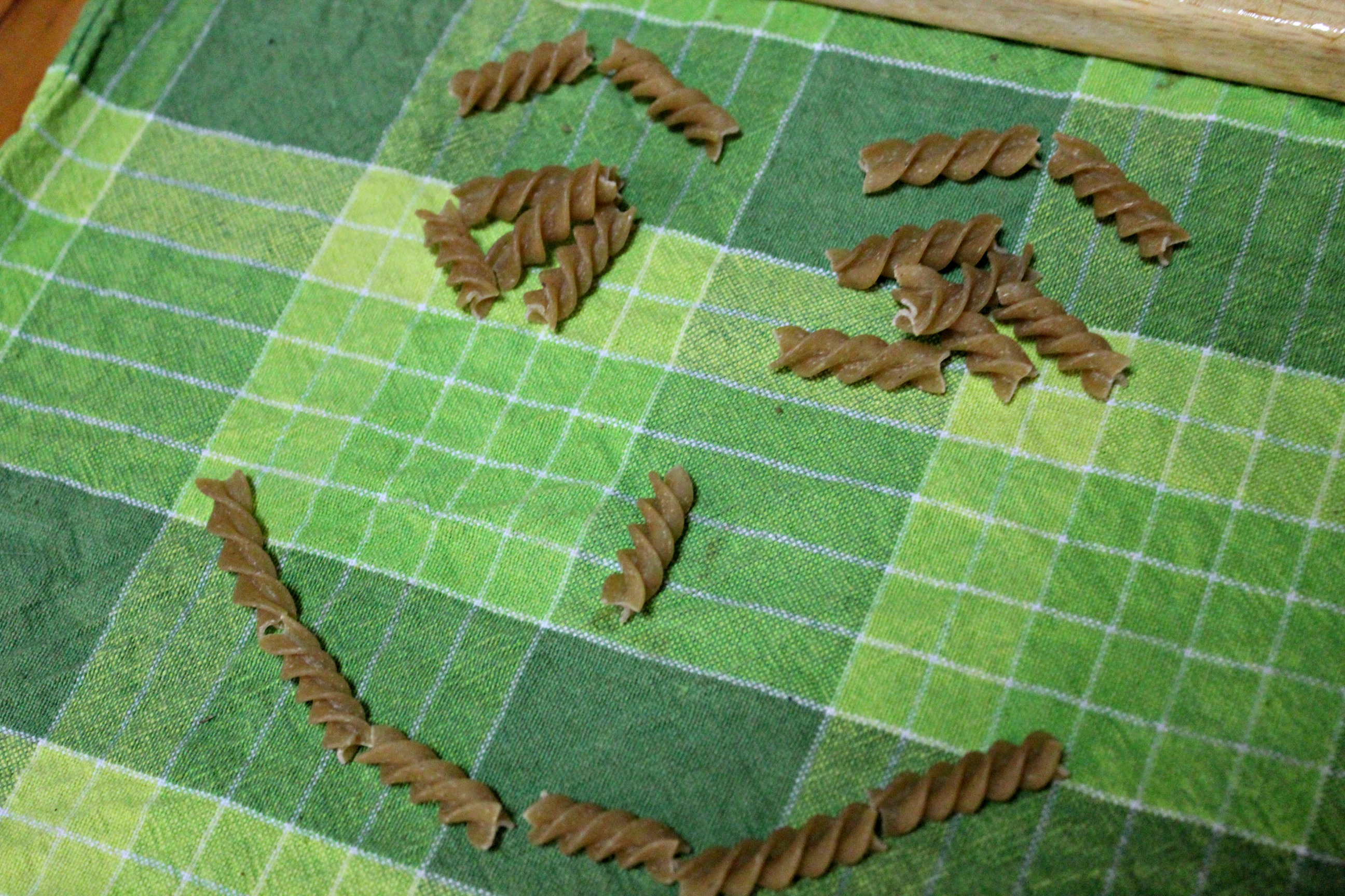 Meanwhile bring a large pot of water to a boil, add the salt and cook fusilli until tender yet firm to the bite (“al dente”) according to package directions. Drain and run under cold water to cool. Add the pasta to the seasoning, mix well and put it into the fridge for at least one hour before serving. Enjoy it!