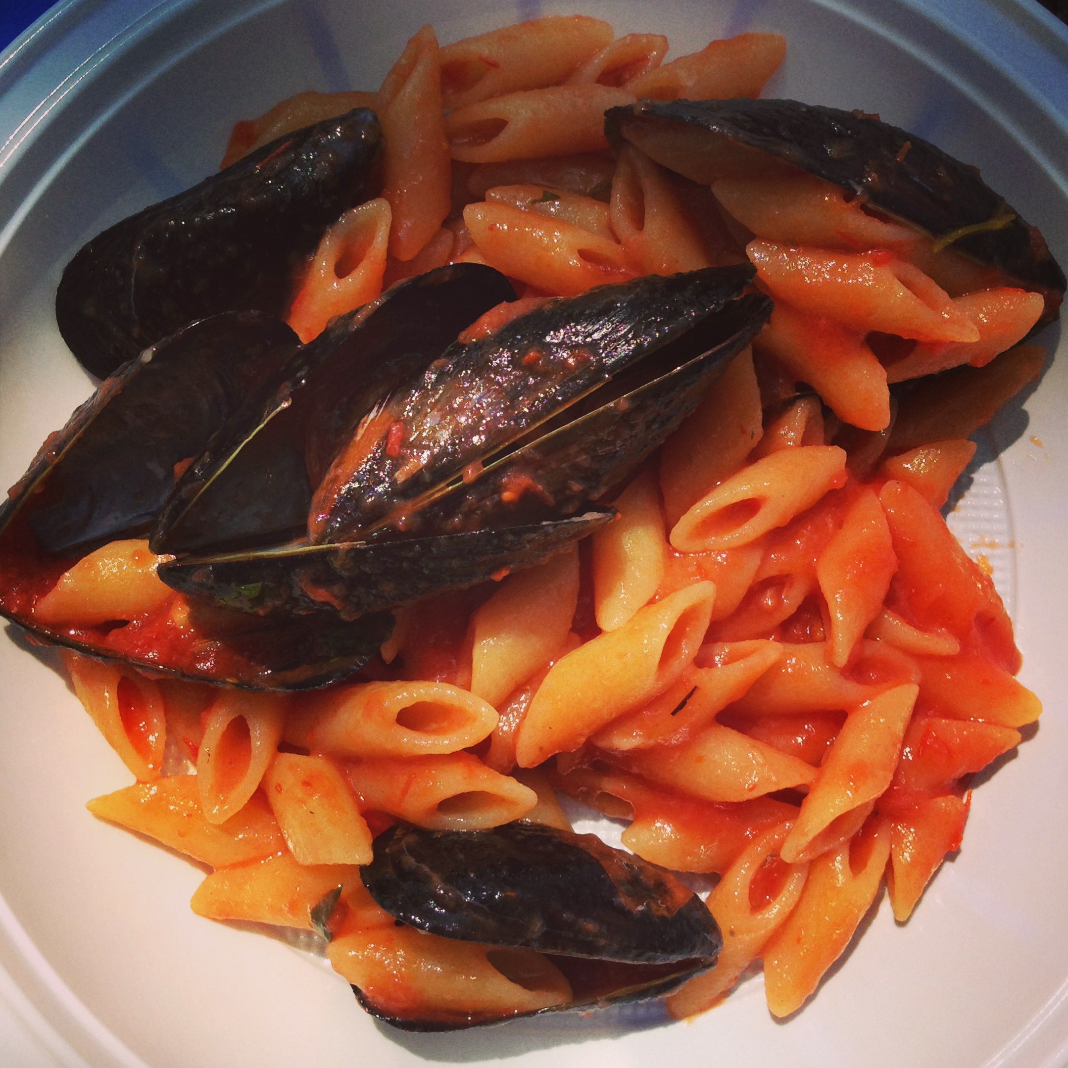 Pasta con cozze cucinata e servita dal capitano del motoveliero con cui abbiamo fatto un’escursione alle bellissime isole di Spargi e Budelli / Pasta with mussels cooked and served by the Captain of the sailer with whom we made a trip to the beautiful islands of Spargi and Budelli (Arcipelago della Maddalena)