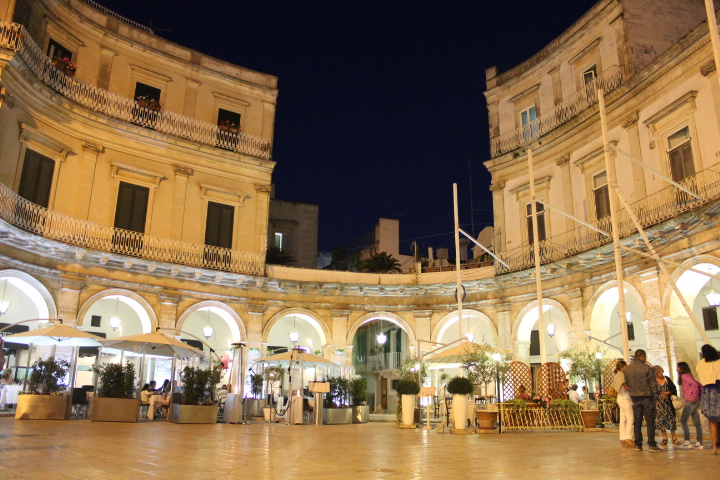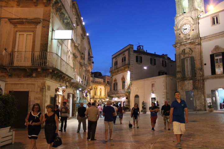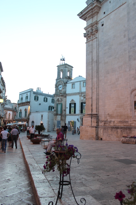 Quant’è bello fare la turista in Puglia? Ogni volta scopro posti meravigliosi. Questa è la bellissima e vastissima Valle d’Itria, a cavallo tra le province di Bari, Brindisi e Taranto, caratterizzata da tantissimi ulivi, vigneti e tipiche abitazioni in pietra a forma di cono, i trulli. Tra un trullallero e un trullallà (scusate, il caldo!) si trovano Locorotondo, Cisternino e Martina Franca. Queste foto le ho scattate proprio a Martina Franca (all’inizio chiedevo sempre come si scrivesse, non mi ricordavo mai se fosse un’unica parola o due staccate…), in provincia di Taranto, nell’ora dell’aperitivo prima di abbuffarmi di orecchiette e brasciole in una trattoria nei dintorni. Di chiaro stile tardo barocco, l’architettura del centro antico è caratterizzata da vicoli stretti e bianchi, vere e proprie galleria d’arte a cielo aperto dove si respira tanta storia e il calore della Puglia.
