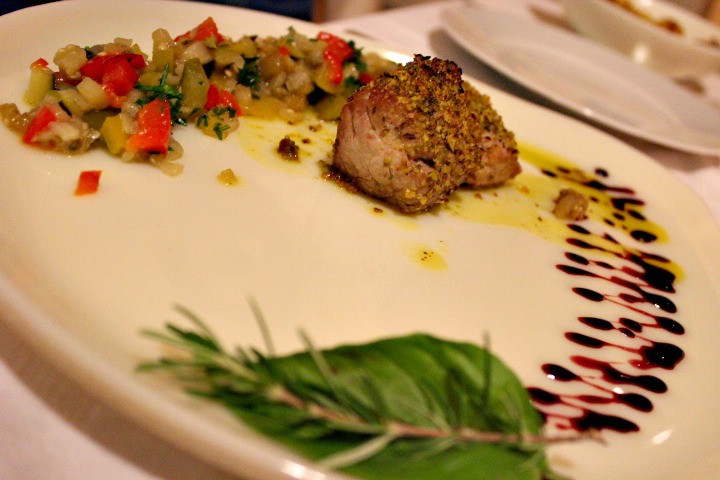 Come seconda portata il filetto di maialino in crosta di pistacchio con salsa di ciliegie – che forse avrei cotto un pochino meno, quel tanto che basta per renderlo ancora più tenero… ma a me piace la carne al sangue quindi faccio testo fino a un certo punto – e patate al forno.