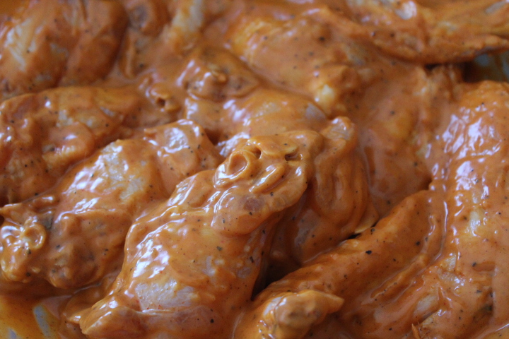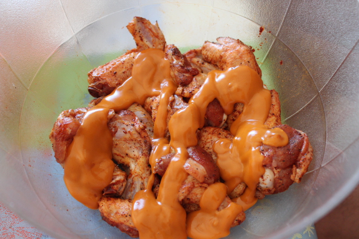 Pour the warm sauce over the wings and mix with your hands. Let them marinate for at least 8 hours.
