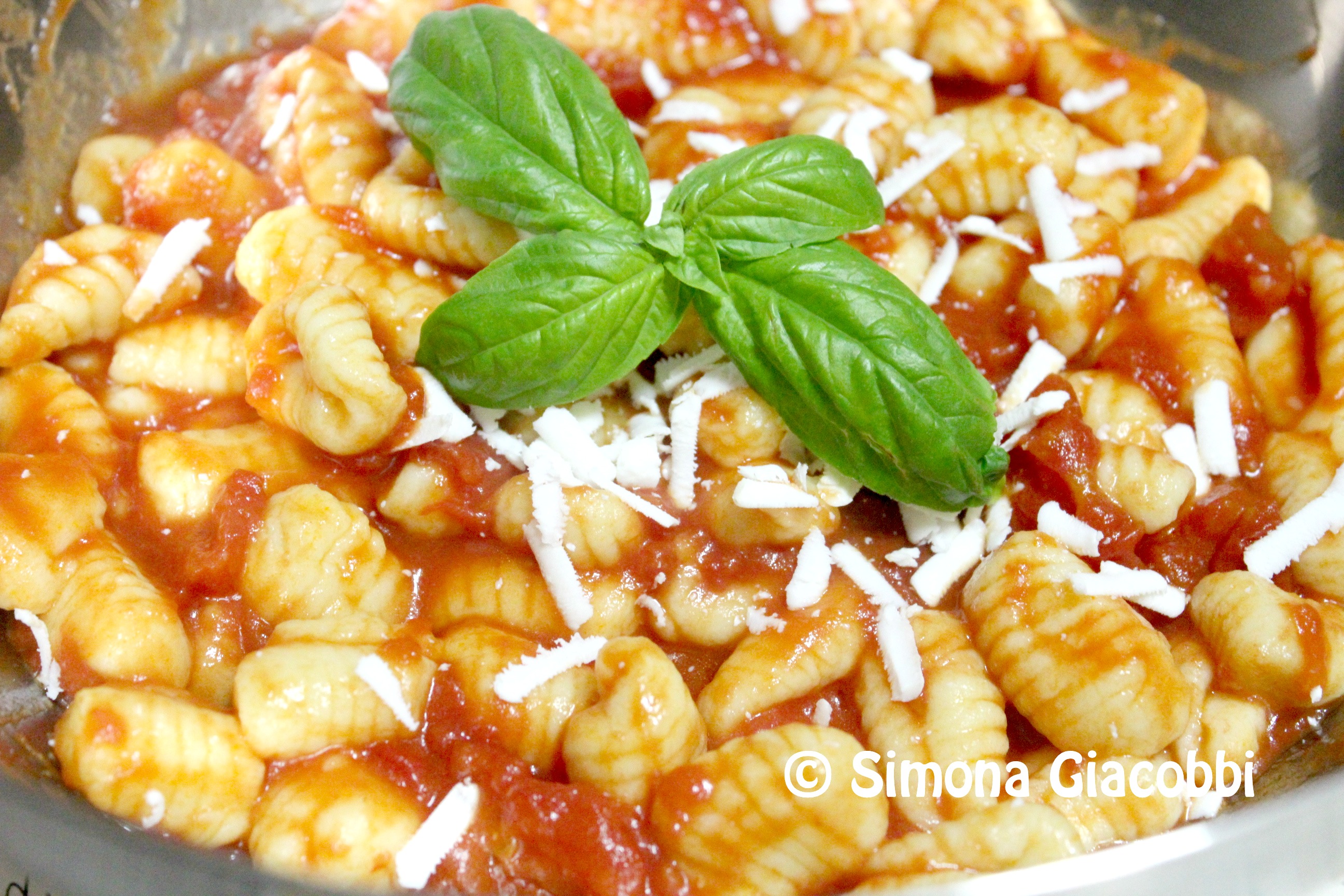 Transfer the gnocchi to a recipient and top with the tomato sauce. Instead of tomato sauce you can use butter, sage and Parmigiano Reggiano cheese.