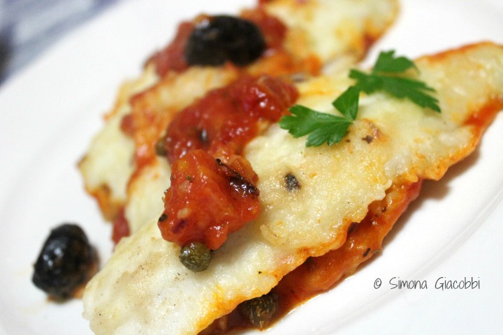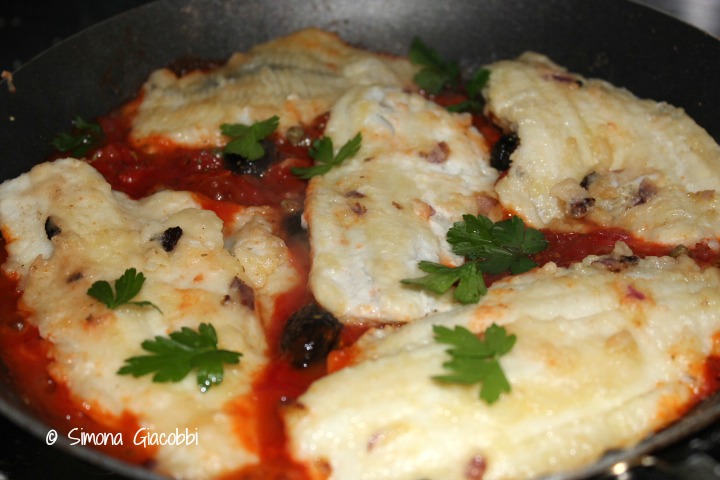 FILETTI DI PLATESSA CON POMODORO, OLIVE E CAPPERI