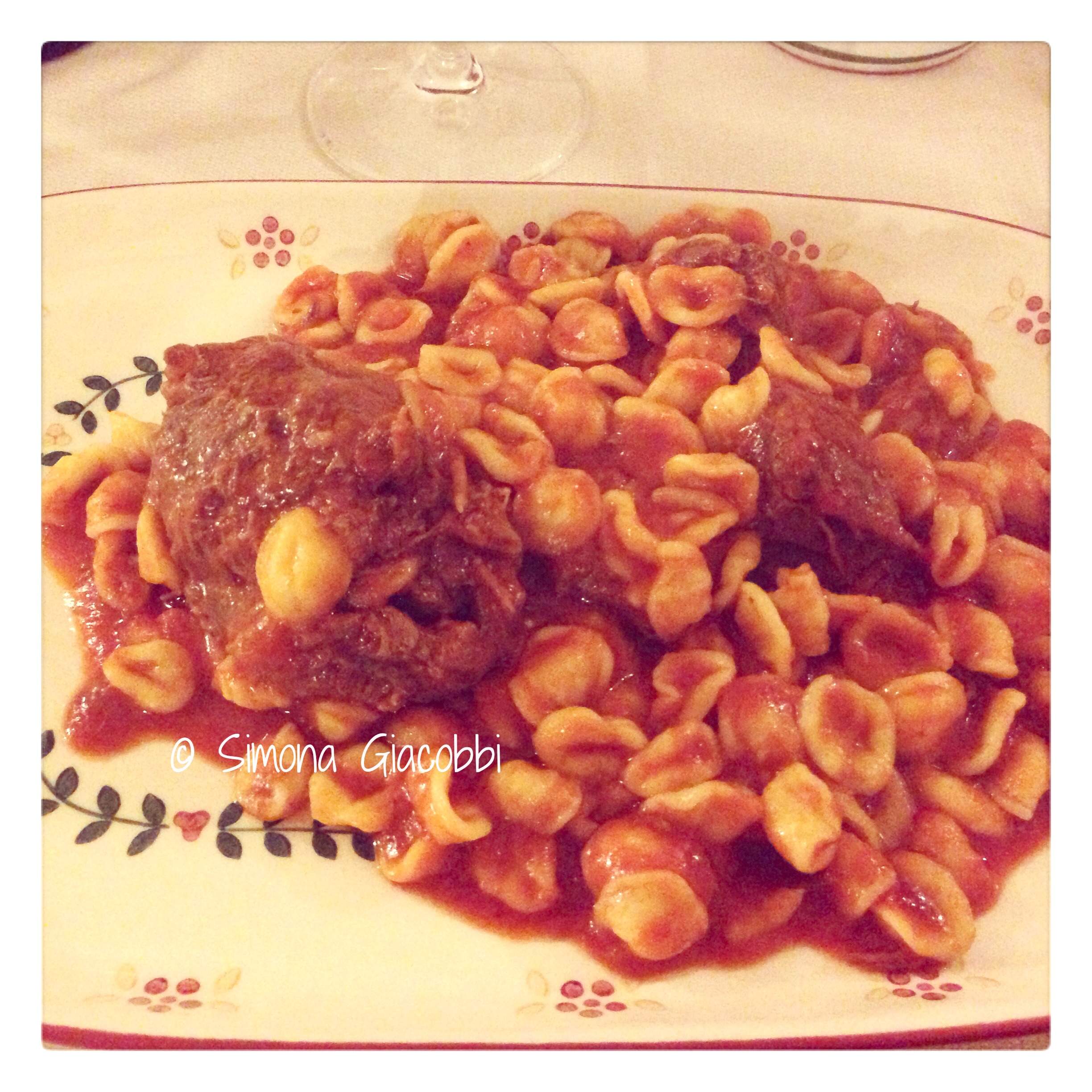 Orecchiette (singular, orecchietta), from orecchio (ear) + etto (small)) is a kind of homemade pasta typical of Puglia or Apulia, a region of southern Italy. Its name comes from its shape, which reminds one of a small ear. In Barese dialect it is called recchietedd, or chiancaredd. The traditional dish from Puglia is orecchiette alle cime di rapa. Around Capitanata and Salento, orecchiette are traditionally also dressed with a tomato-based sauce (al sugo), with or without meatballs and ‘braciole’ (al ragù) and/or a sprinkling of ricotta forte, a seasoned sheep-milk variety of ricotta cheese. I had already tried to make orecchiette when I lived in Canada. It was so funny! And since I love to mess around and get my hands dirty with flour I accepted the challenge and I tried to make it here, in the land that gave birth to orecchiette that has become my first favorite dish (excluding ravioli, gnocchi and anolini from my city of course). Here you can find the recipe and the instructions. It takes a little practice to learn how to do it but when you see the result you will do it every Sunday with turnip tops or ragù.