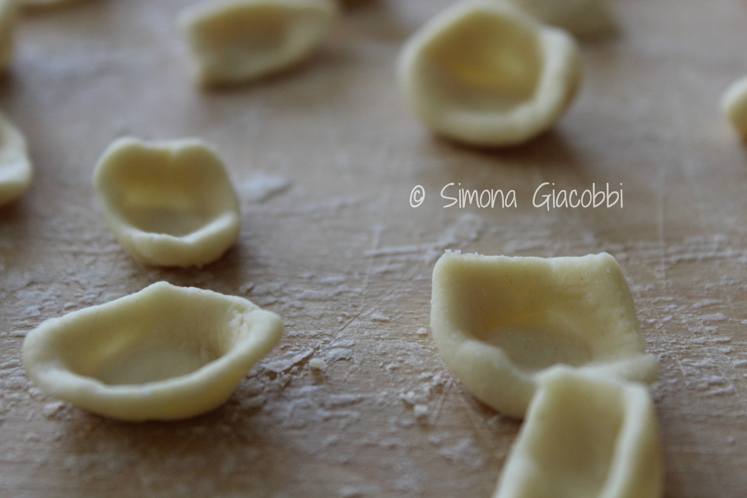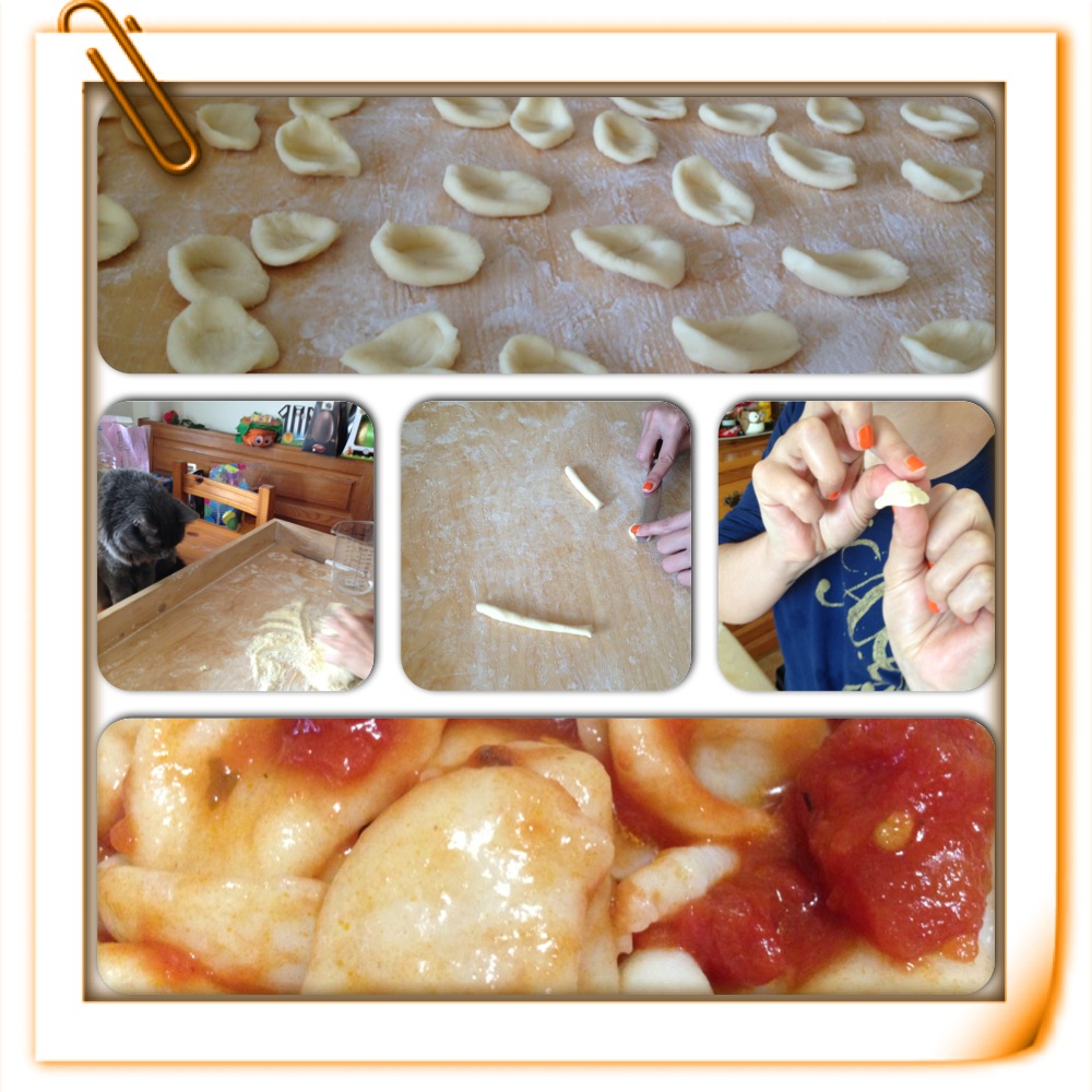 Avete mai visto un’emiliana fare le orecchiette? Beh, ora sì. In realtà avevo già provato a farle addirittura in Canada in compagnia di quel pugliese doc che ora condivide con me gioie e dolori. Più gioie che dolori. Era stato divertentissimo…! E siccome amo pasticciare e avere le mani sporche di farina ho accettato la sfida e ho provato a rifarle anche qui, proprio nella terra che ha dato origine alle orecchiette che sono diventate il mio primo piatto preferito (escludendo tortelli, gnocchi e anvein piacentini ovviamente!!). In realtà è una bella lotta perché in Puglia è tutto buono! Il dialetto barese per me rimane ancora una lingua sconosciuta, ma quando sento “cavatìedde”, “fascenècchje”, “récchjetèdde”, “strascenete”, il mio pensiero corre subito alle orecchiette. Questo non vuole dire che penso solo al cibo, sia chiaro. 😉