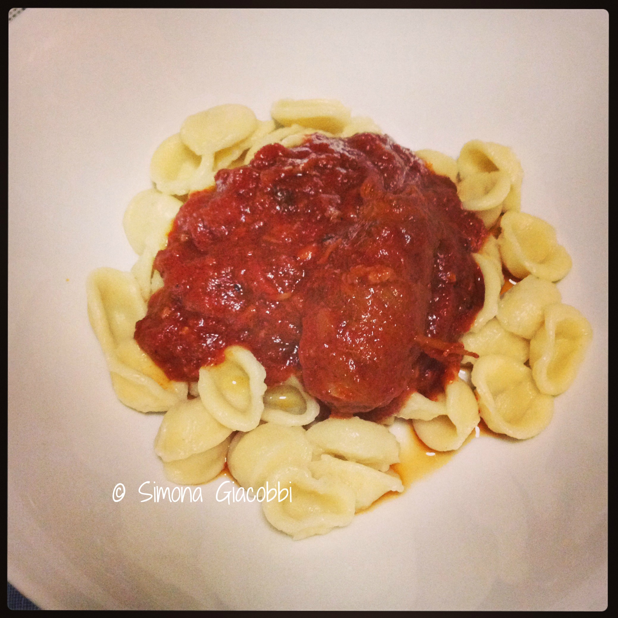 Quindi aggiungete il pomodoro pelato, la salsa, un bicchiere d’acqua, il basilico, il sale e il pepe e ora attendete con pazienza… lasciate cuocere a fuoco lento per 5 ore. Sorvegliate e mescolate di tanto in tanto con un cucchiaio di legno perché non si bruci e finché non risulterà un sugo denso e l’olio sarà venuto a galla. A cottura avvenuta, col sugo che è diventato ragù – monumento della cucina pugliese – potete condire le orecchiette o la pasta che preferite. Servite la carne come seconda portata.
