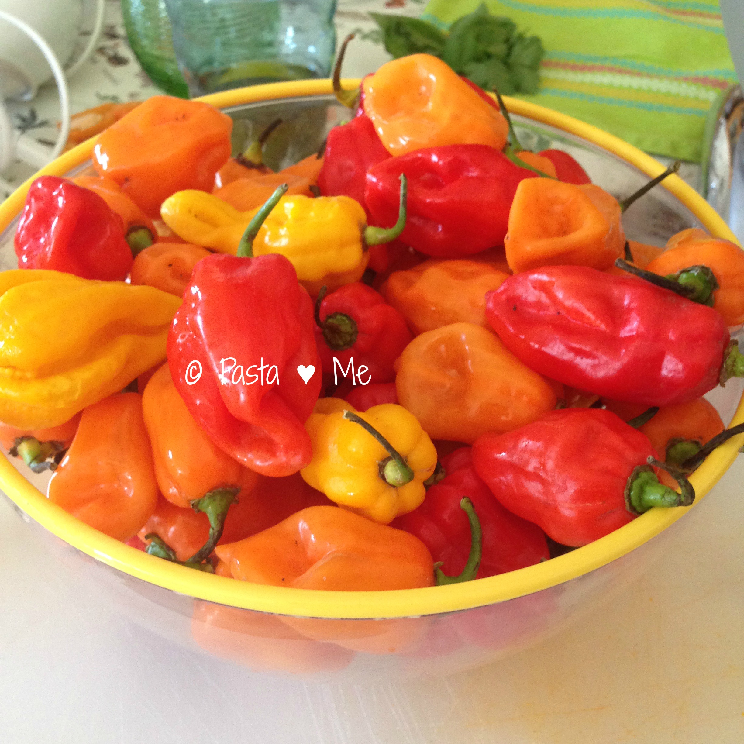 After several broken capillaries, continuous coughing and burning several fingers even if I wore latex gloves, here are my habanero sauces. Real weapons of mass destruction. These habanero were kindly given us by our friend Cristian from Porto Cesareo.