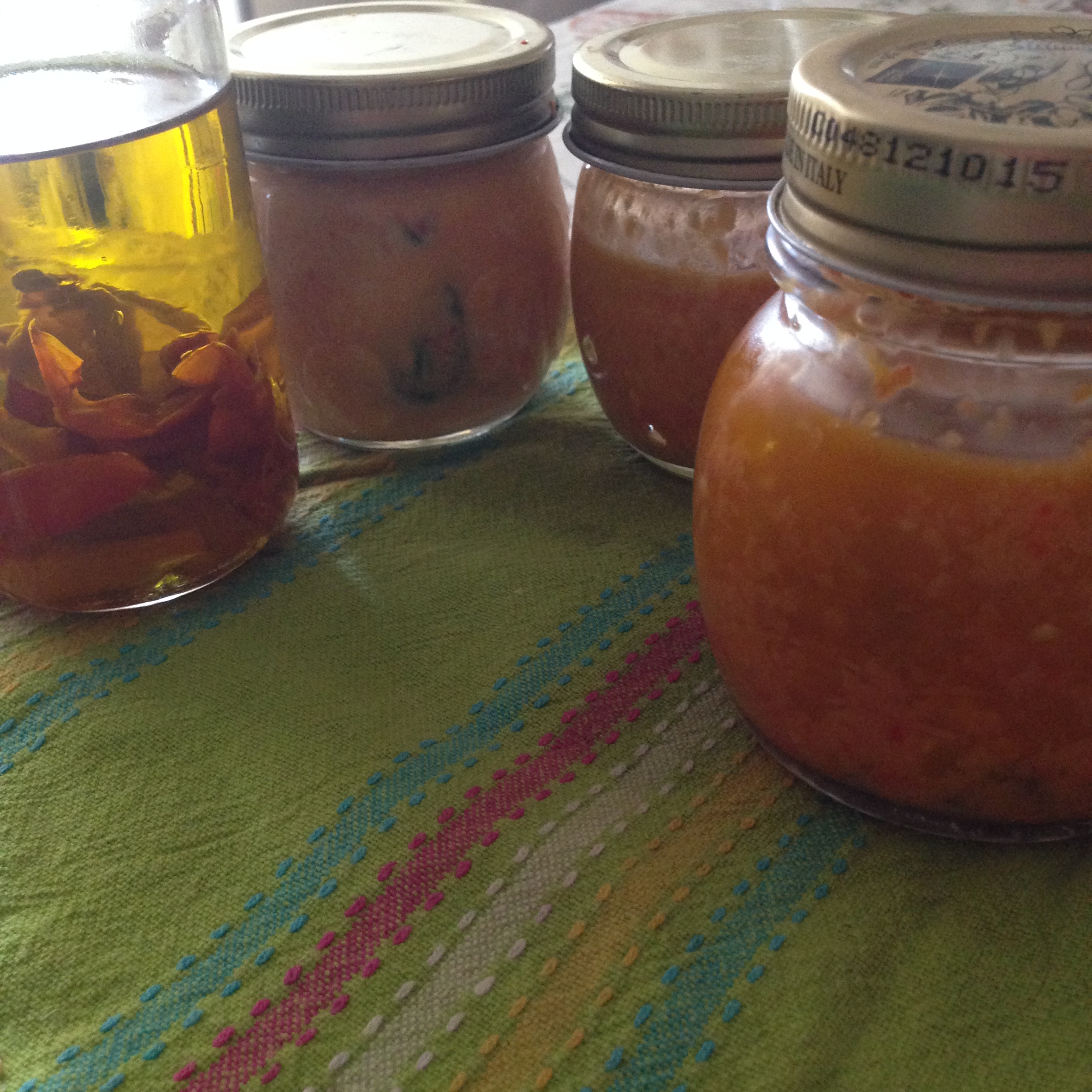 Dopo vari capillari rotti, colpi continui di tosse e bruciori vari su dita nonostante i guanti in lattice, ecco le mie salsine di habanero. Delle vere e proprie armi di distruzione di massa preparate con gli habanero che mi ha gentilmente regalato Cristian, un amico di Porto Cesareo.