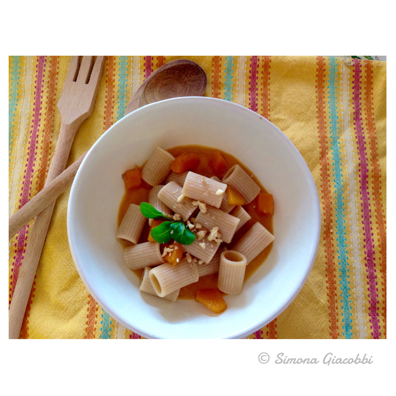 Che ne dite di un piatto gustoso, veloce, salutare e light? Pasta integrale con la zucca e granella di noci.