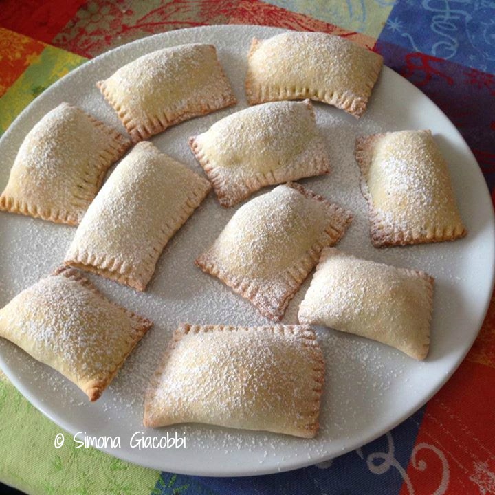 I “turtlitt” (tortelli) sono un dolce tipico di Carnevale che si mangia a Piacenza, la città dove sono nata. Una tradizione che viene particolarmente sentita soprattutto nel quartiere di Sant’Antonio. Nel dialetto locale vengono chiamati turtlitt ad Sant’Antoni. Questa è la versione che abbiamo sempre fatto a casa, ma alcuni utilizzano per esempio la mostarda di Cremona al posto della marmellata di prugne che invece uso io. Altra modifica che ho apportato: li ho cotti in forno ma andrebbero fritti e al ripieno ho aggiunto due cucchiai di Brandy…!!
