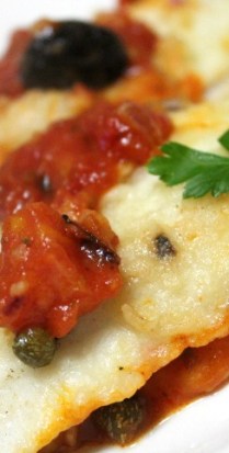 Filetti di platessa con pomodoro, olive e capperi / Plaice with tomatoes, olives and capers